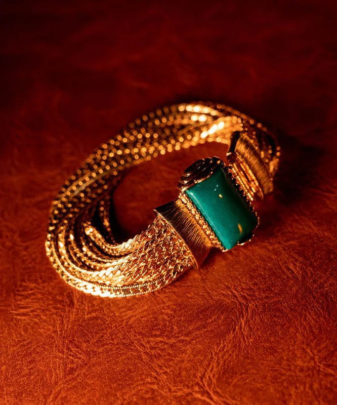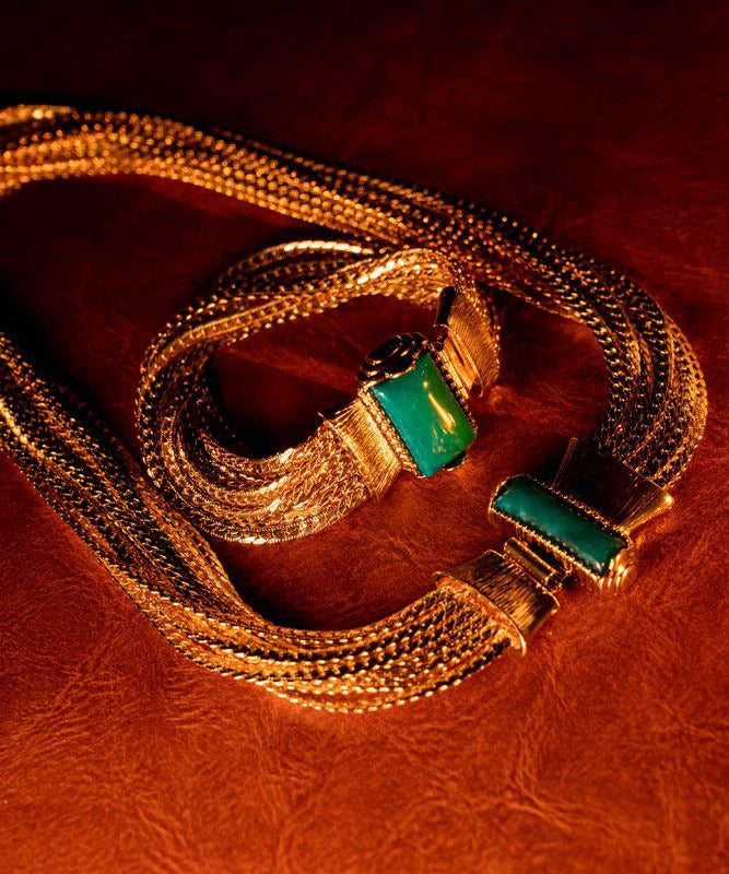 Boho Sterling Silver Overgild Jade Weave Necklace And Chain Bracelet Two-Piece Set