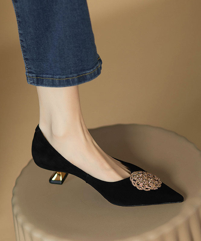 Boutique Comfy Black Suede High Heels Pointed Toe