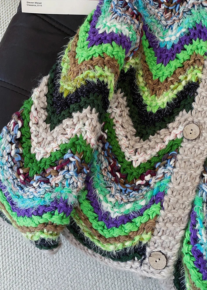 Fashion Mixed Color Striped Thick Knit Cardigans Fall