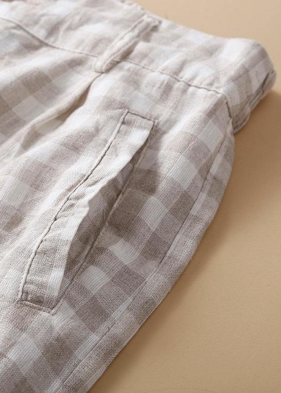 New Black Plaid High Waist Linen Wide Leg Shorts Summer