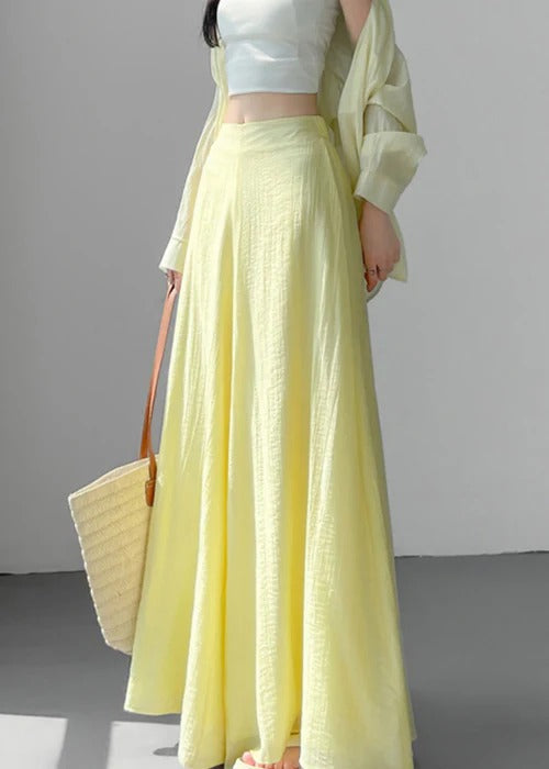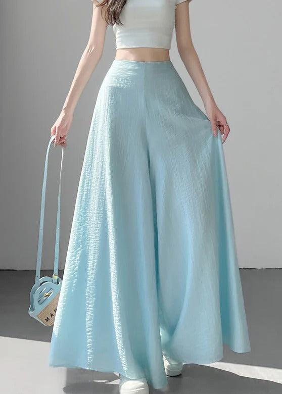Original Blue High Waist Solid Cotton Wide Leg Pants Summer