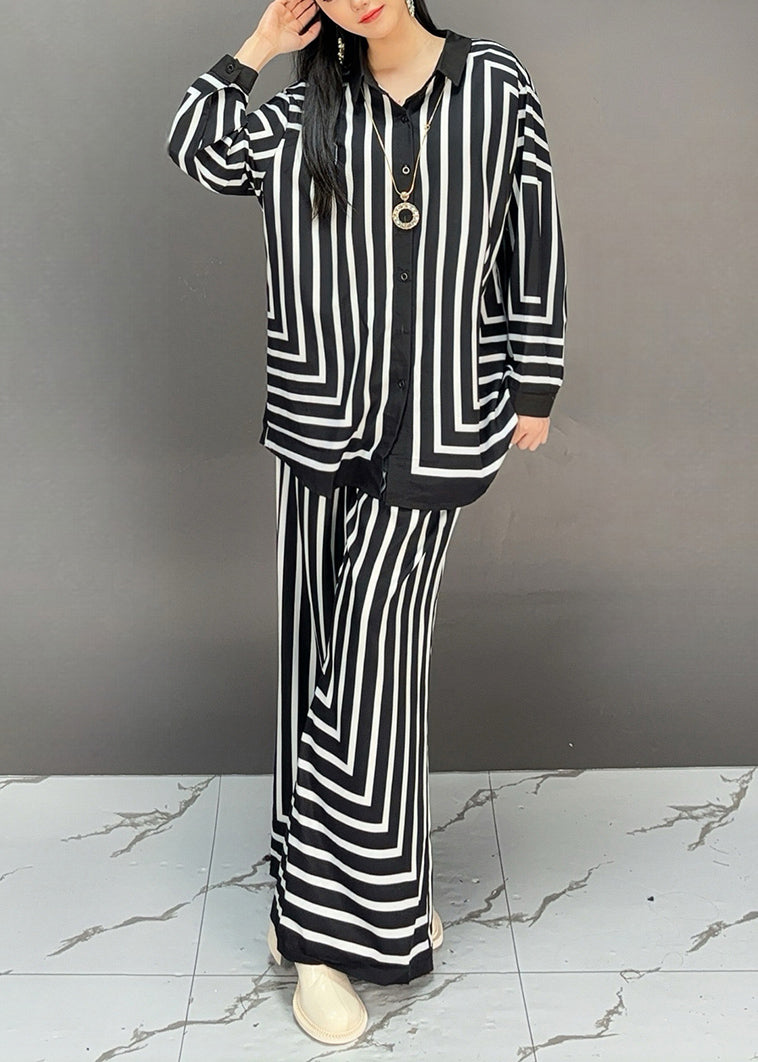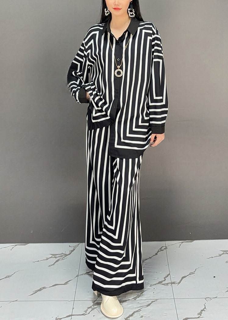 Stylish Blue Peter Pan Collar Striped Cotton Two Pieces Set Fall