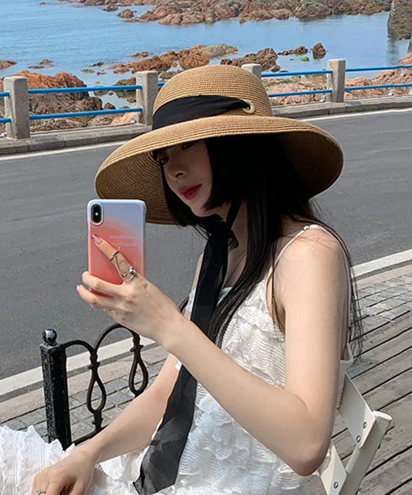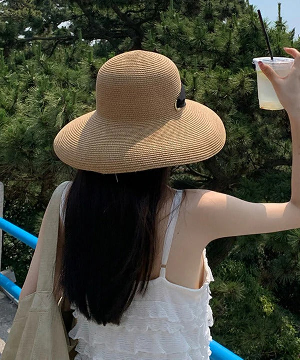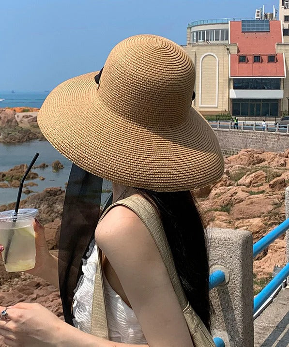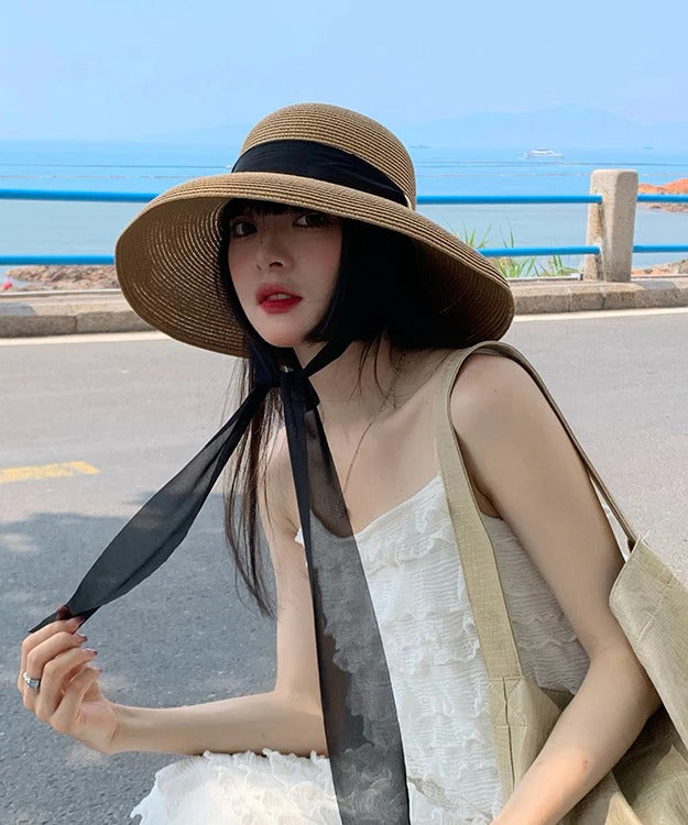 Summer French Style Khaki Versatile Straw Woven Sun Hat