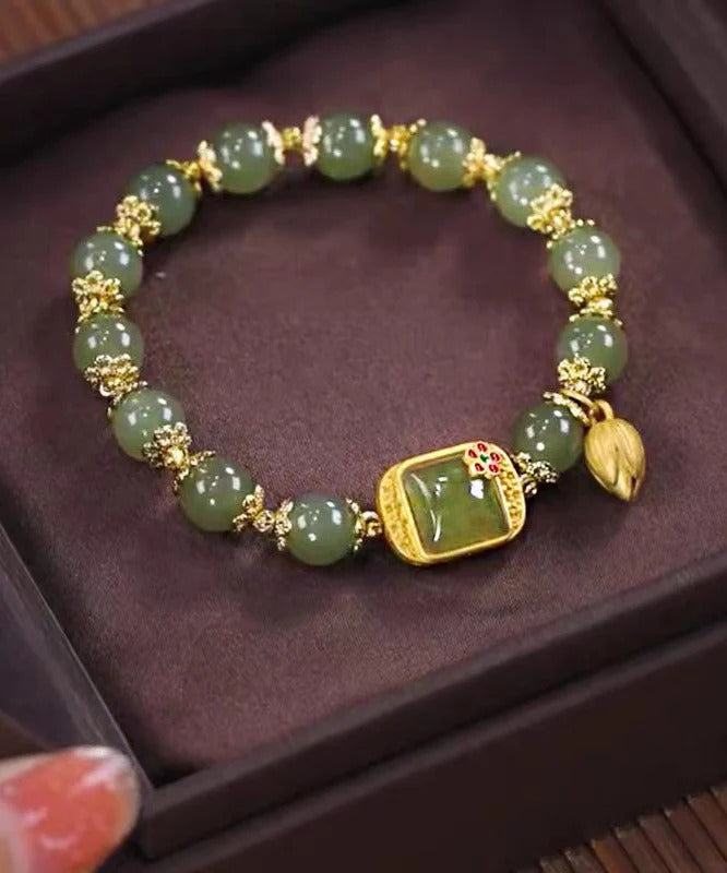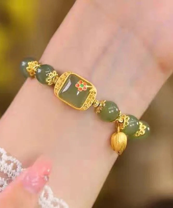 Vintage Green Sterling Silver Overgild Lotus Beading Charm Bracelet