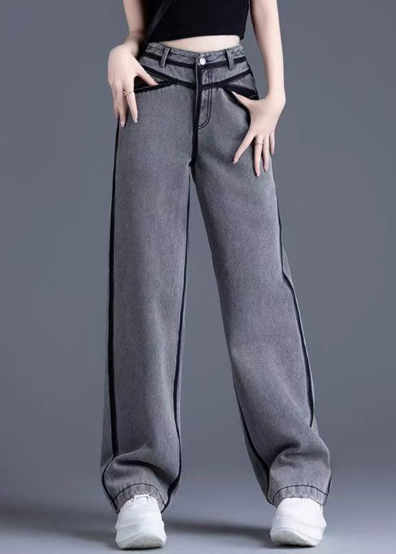 Vintage Grey Pockets High Waist Warm Fleece Pants Spring