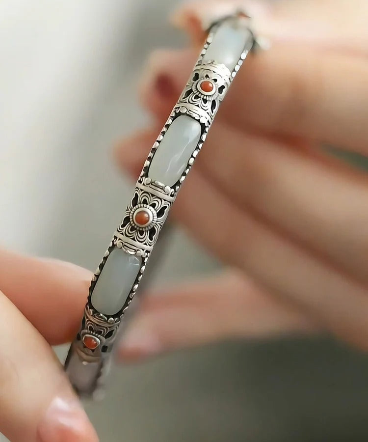 Made of fine Sterling Silver Jade Agate Hollow Out.