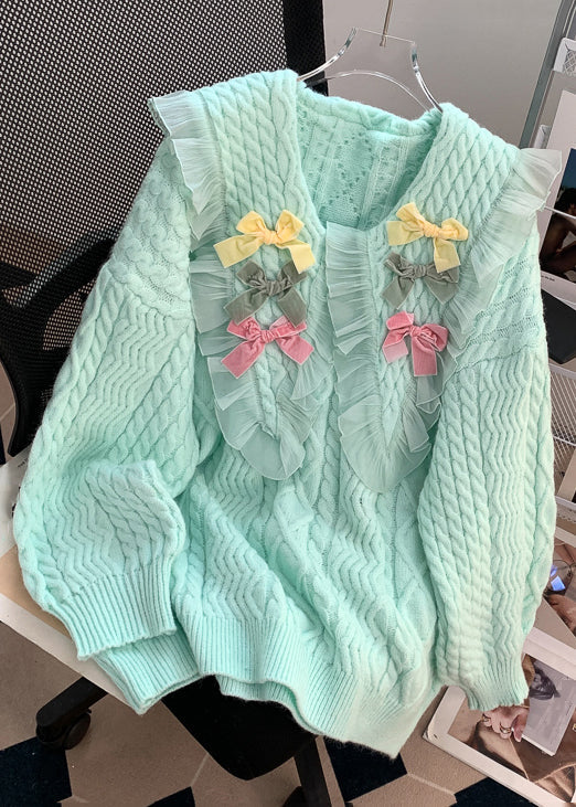 Beautiful Pink Peter Pan Collar Patchwork Cotton Knit Sweaters Fall