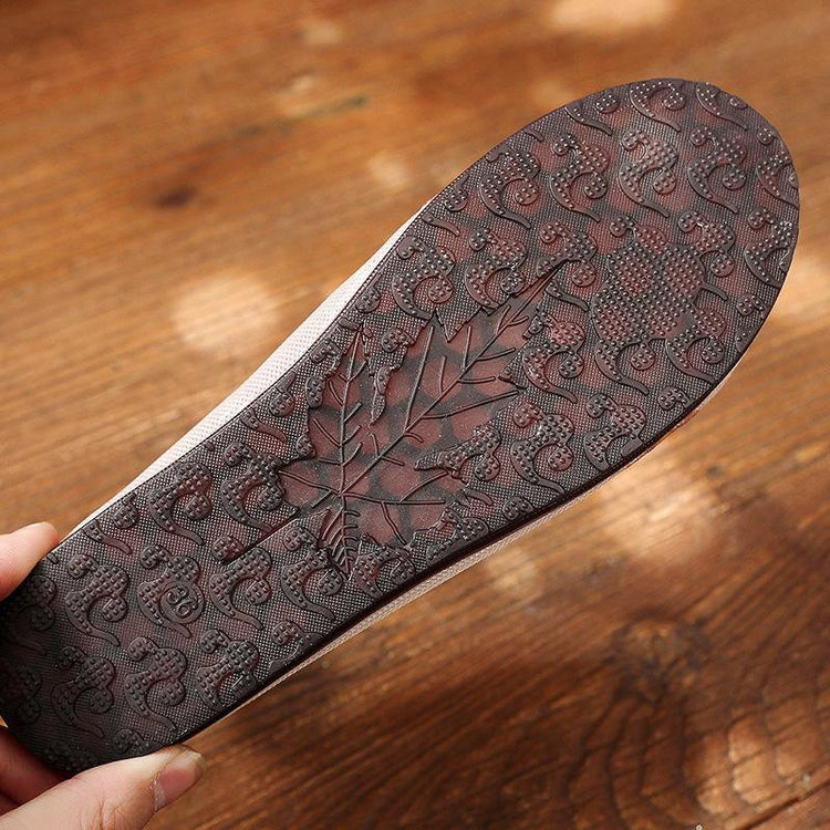 Beige Embroidered Tulle Orient Flats Shoes