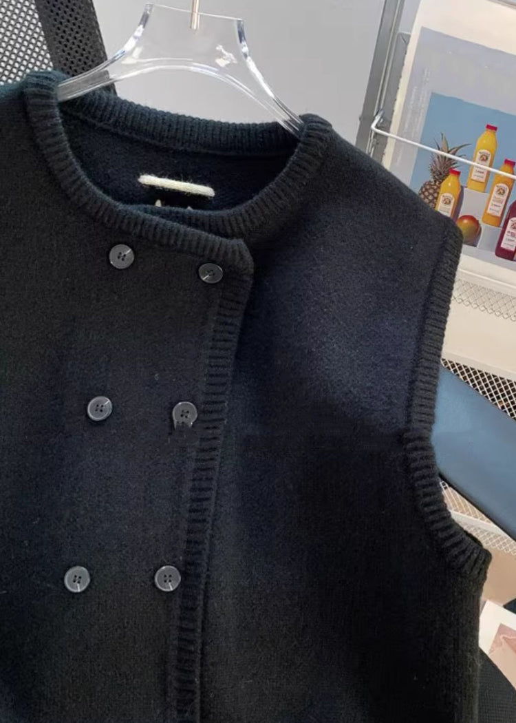Black Cozy Patchwork Knit Waistcoat O Neck Fall