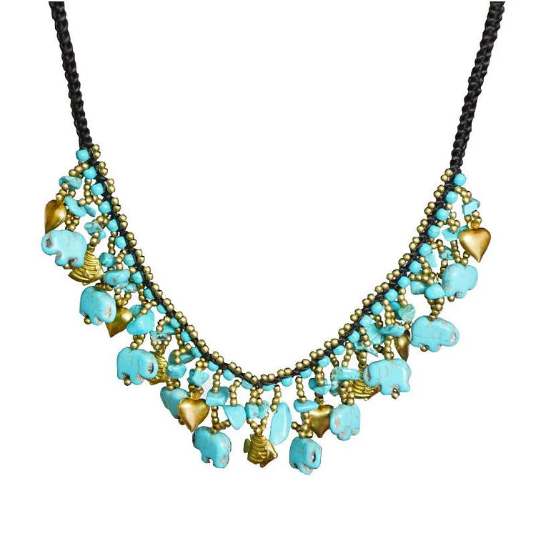 Bohemian Vintage Elephant Pendant Beach Necklace