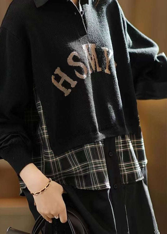 Casual Coffee Peter Pan Collar False Two Pieces Knit Shirts Top Fall