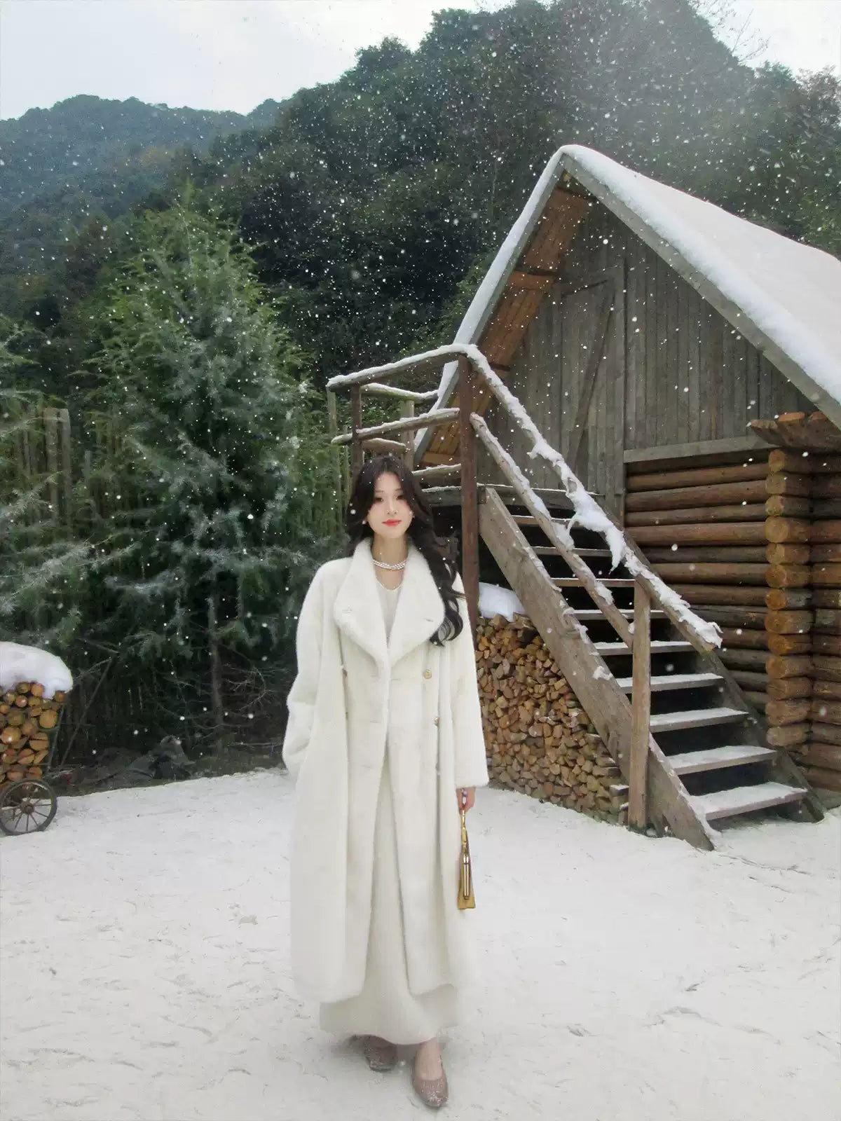Casual Gray Notched Button Thick Faux Leather Long Coats Winter