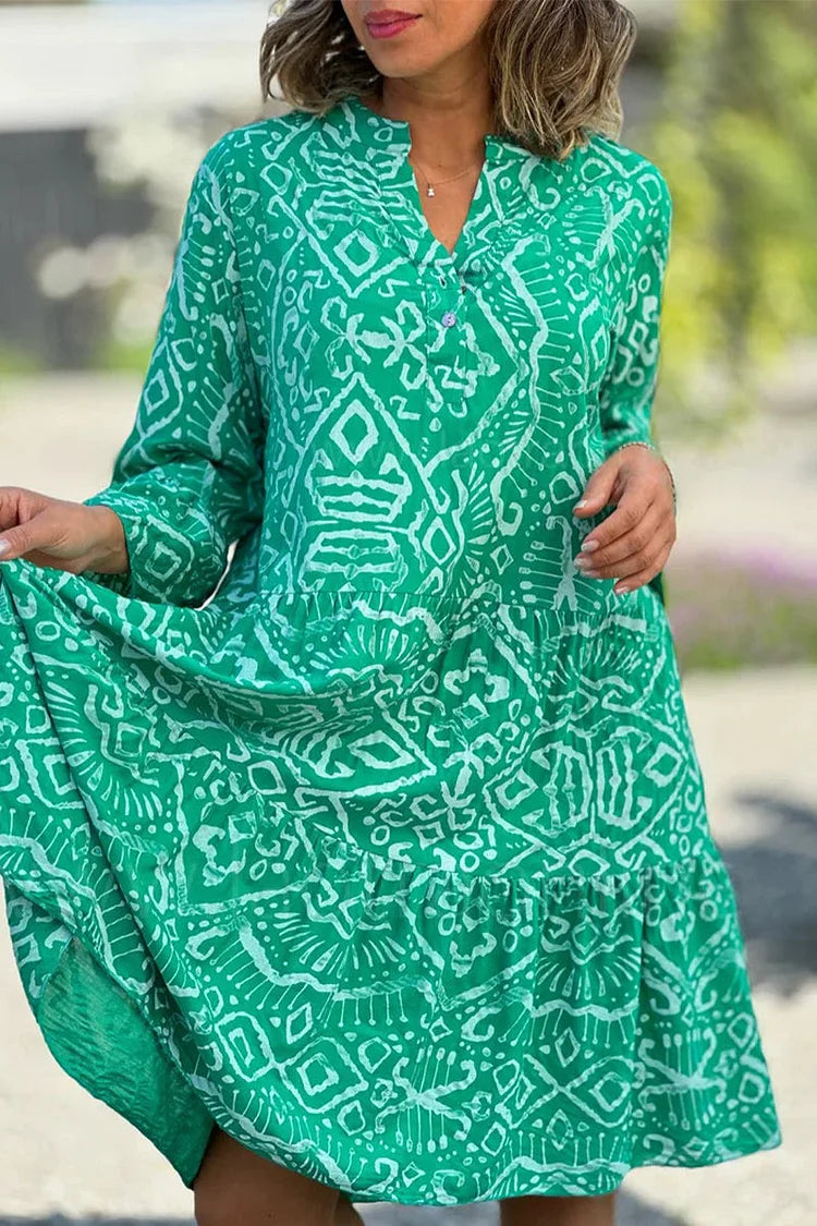 Casual Sweet Geometric Print Buttons V Neck Cake Dress