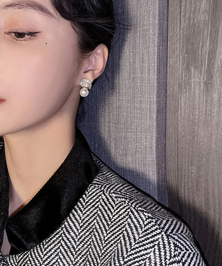 Chic 18K Gold Pearl Zircon Pearl Stud Earrings