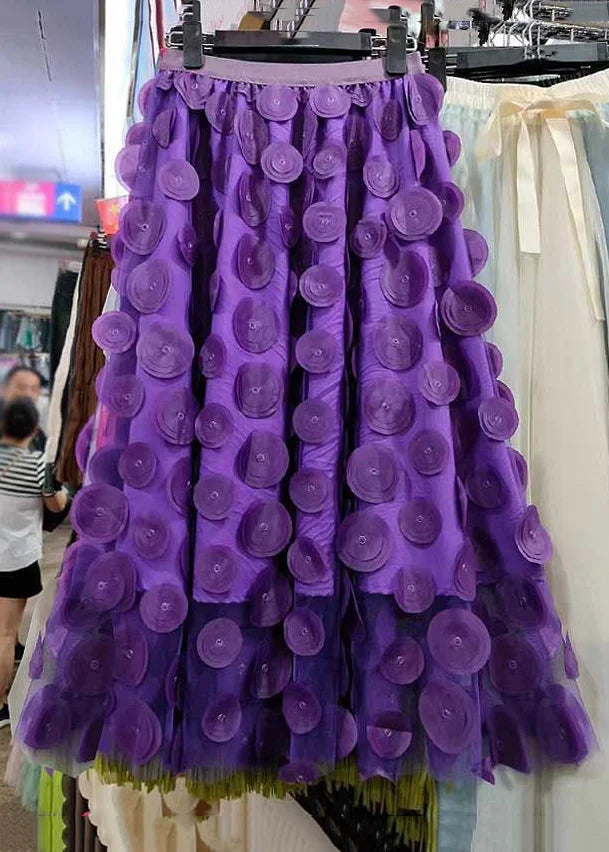 Chic Green High Waist Patchwork Dot Tulle Skirt Summer
