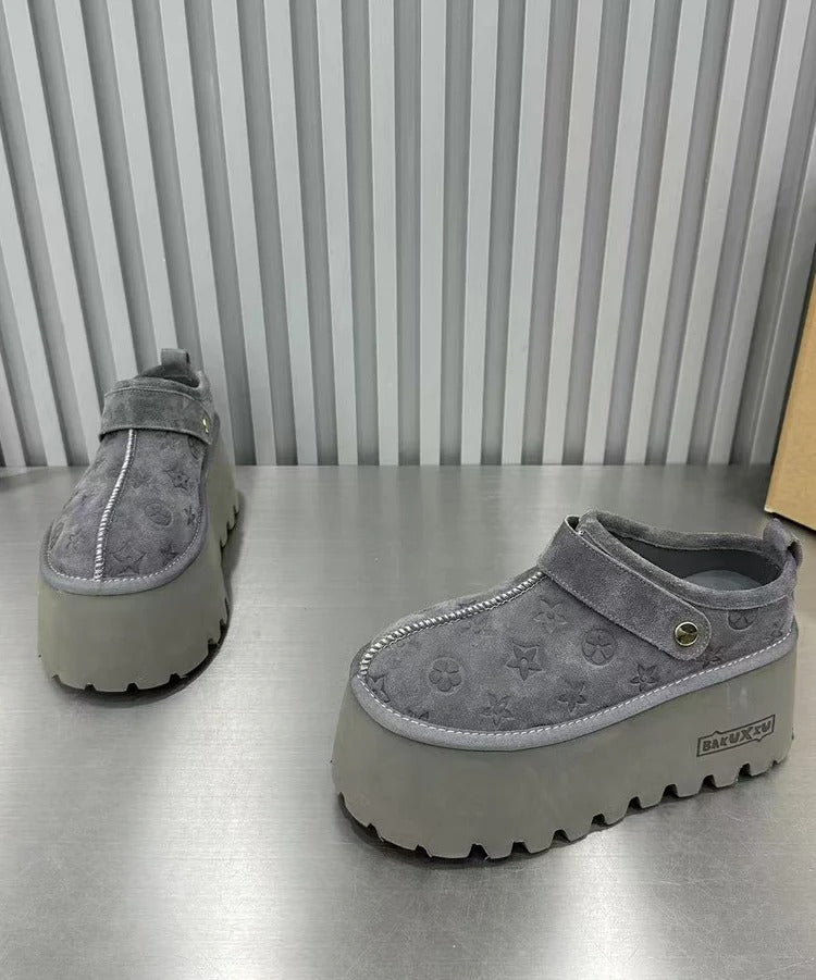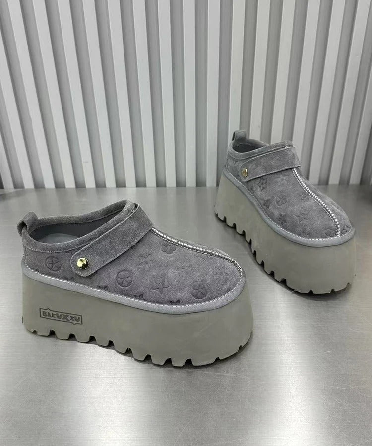 Chic Light Camel Suede Embossed Splicing Platform Slide Sandals