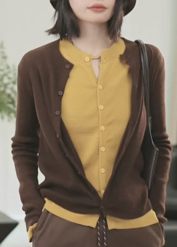 Chic Purple O-Neck Button Fake Two Pieces Cotton Knit Sweater Winter