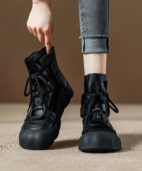 Chocolate Lace Up Splicing Platform Breathable Hollow Out Boots