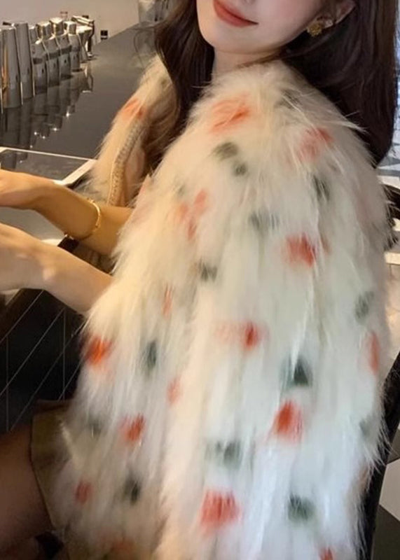 Cute Apricot V Neck Raccoon Hair Print Leather And Fur Coats Winter