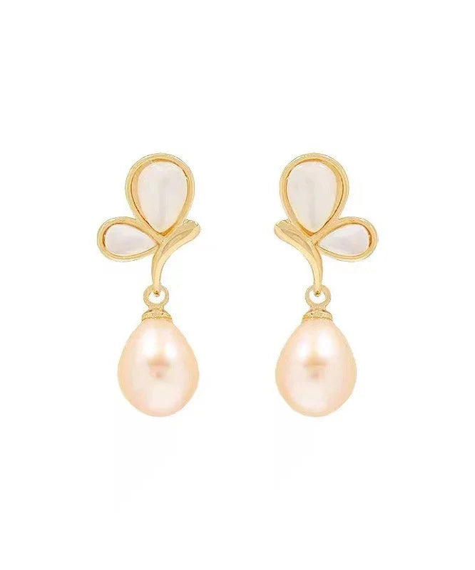 DIY Gold Sterling Silver Overgild Drip Pearl Butterfly Drop Earrings