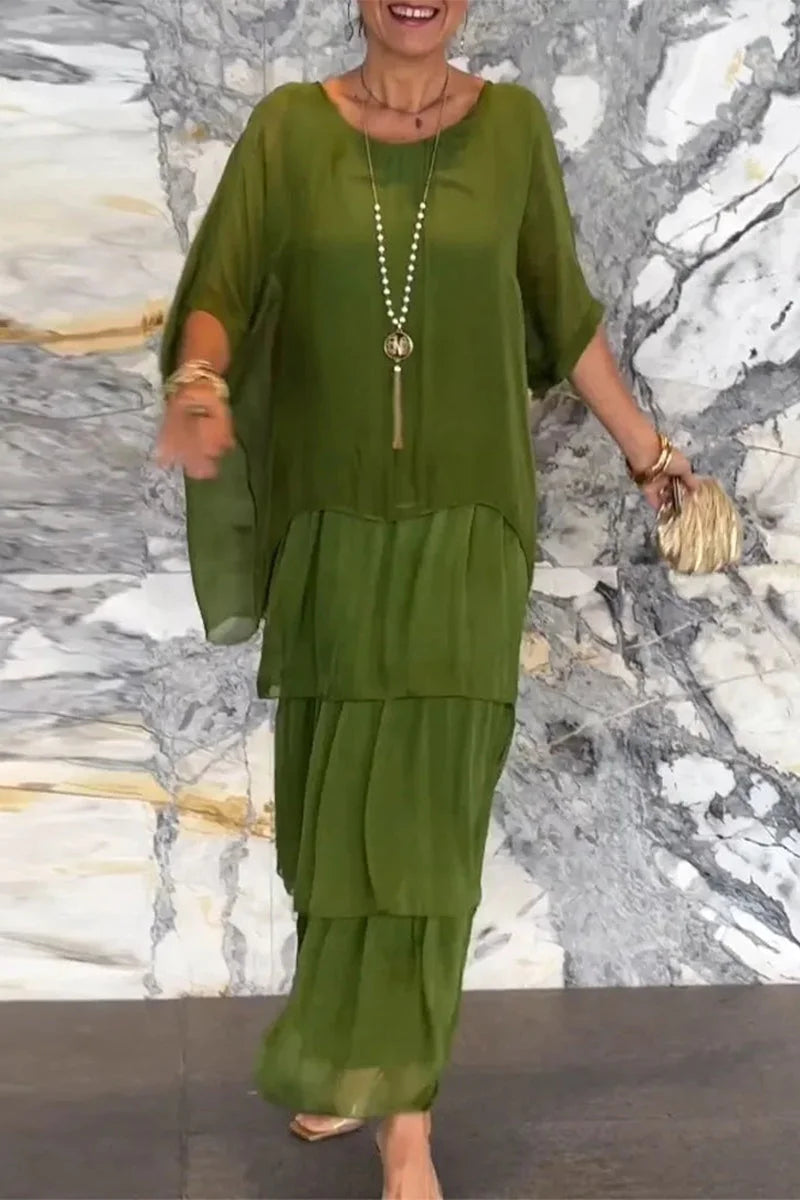 Elegant Solid Flounce O Neck A Line Dresses