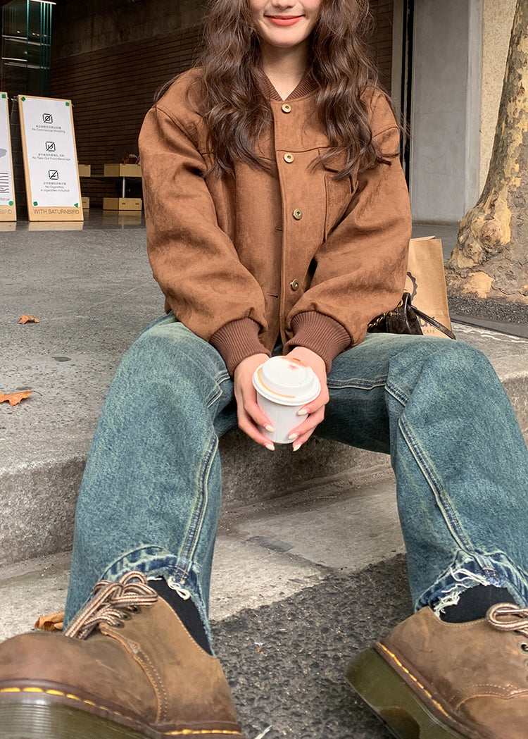 Fashion Brown Pockets Fine Cotton Filled Jacket Winter