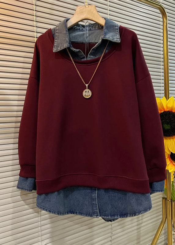 Fine Black Peter Pan Collar Patchwork False Two Pieces Cotton Shirt Tops Fall