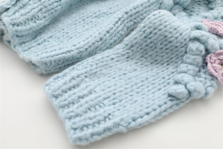 Floral Blue O Neck Button Cozy Knit Coat Winter