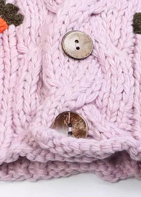 Floral Purple V Neck Button Cozy Knit Cardigans Winter