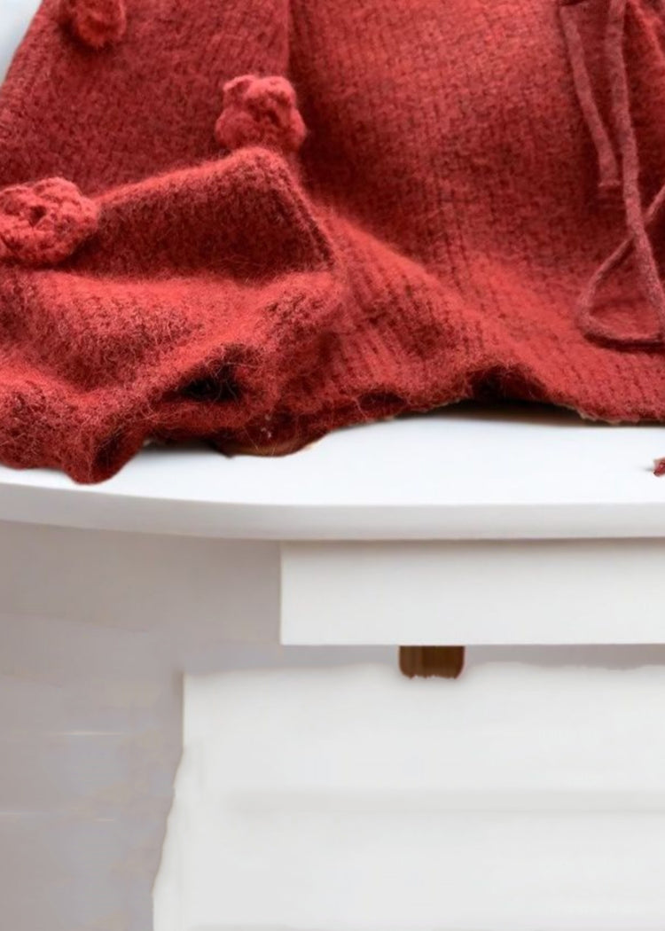 Floral Red V Neck Lace Up Knit Cardigan Spring