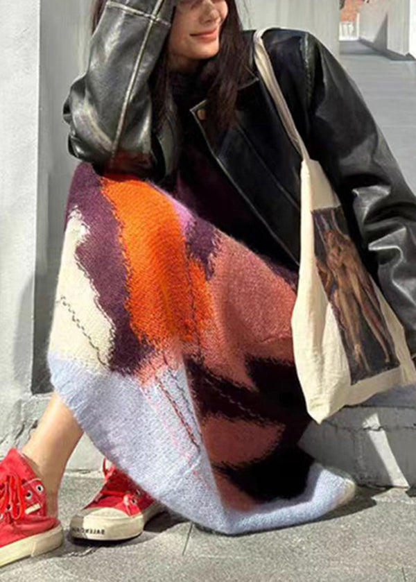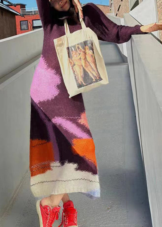 French Purple Hign Neck Slim Fit Knit Sweater Dress Winter