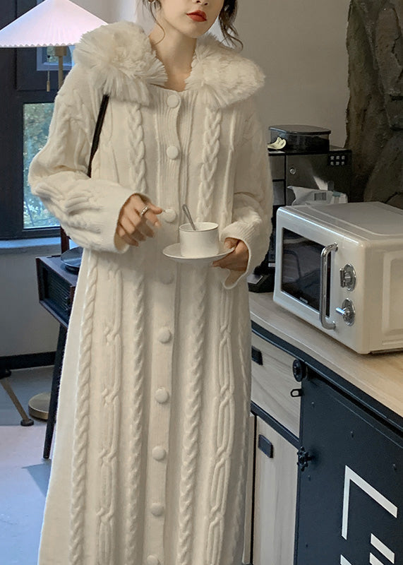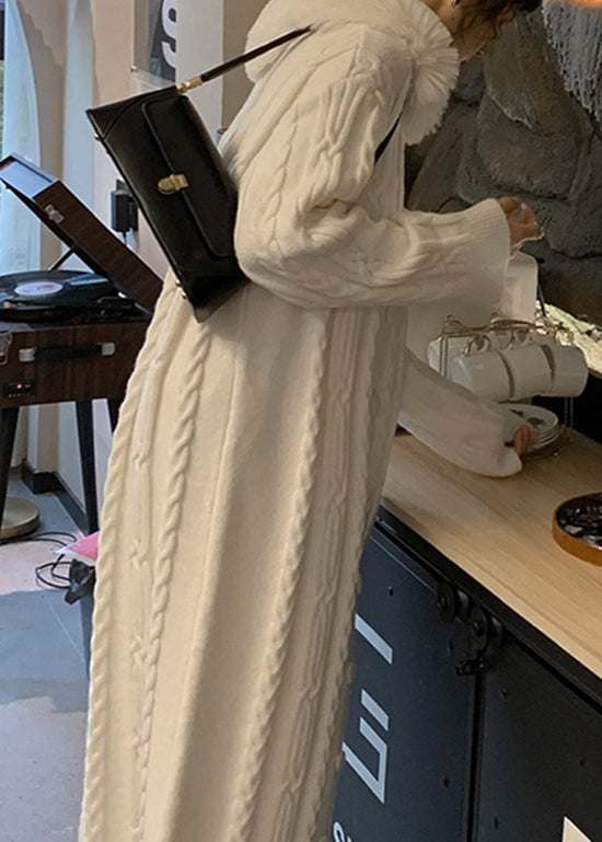 French White Fur Collar Patchwork Knitted Sweaters Dress Fall