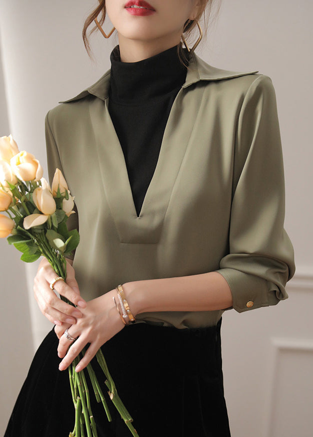 French White Peter Pan Collar Patchwork False Two Pieces Cotton Tops Fall