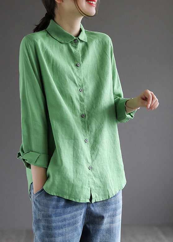 Green Peter Pan Collar Solid Shirt Long Sleeve