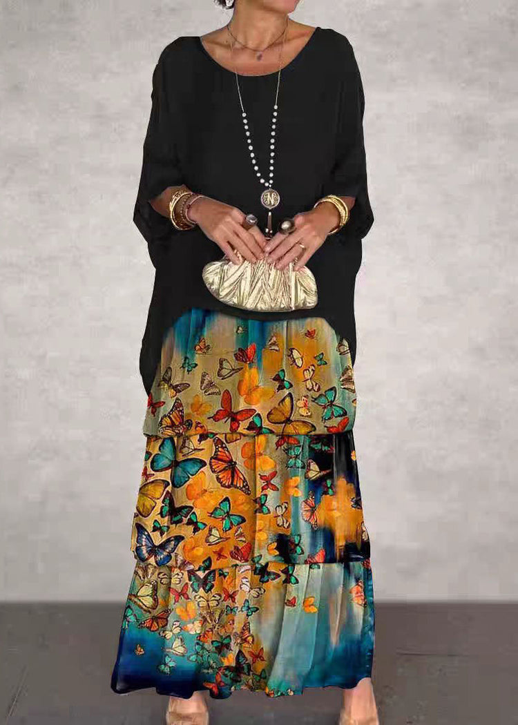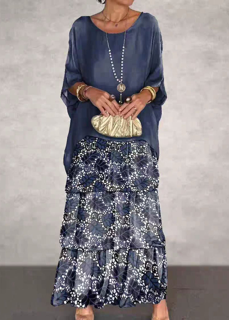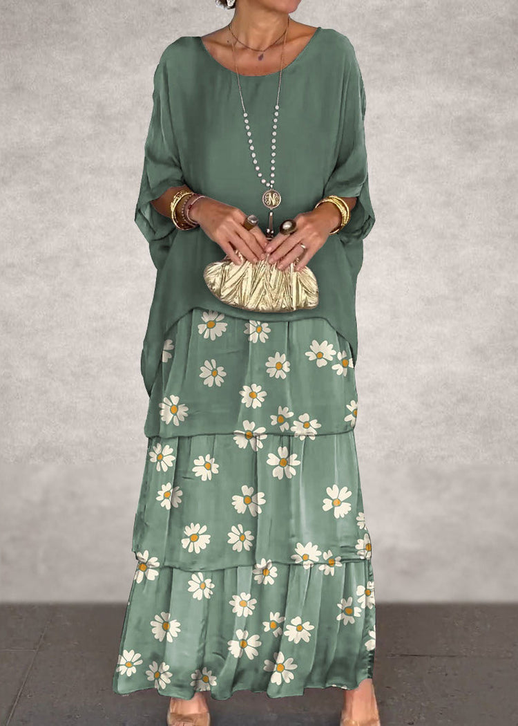 Green Print False Two Pieces Dresses O Neck Bracelet Sleeve