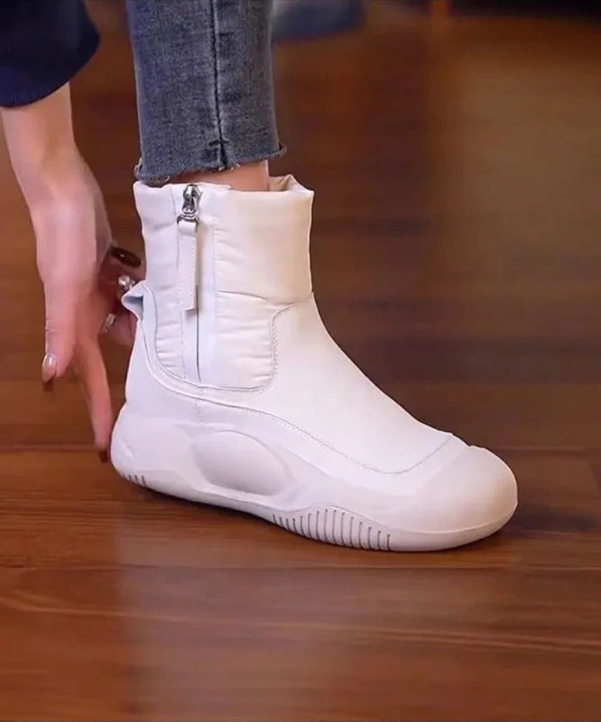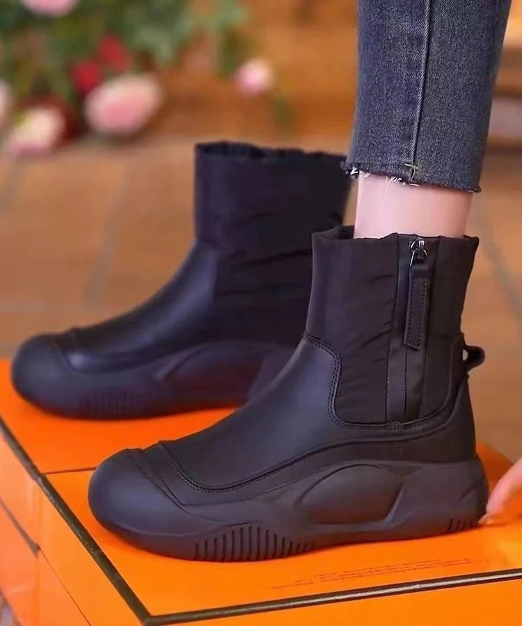 Grey Zippered Chic Splicing Boots Fuzzy Wool Lined