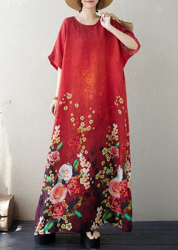 Handmade Red Oversized Floral Cotton Maxi Dresses Summer
