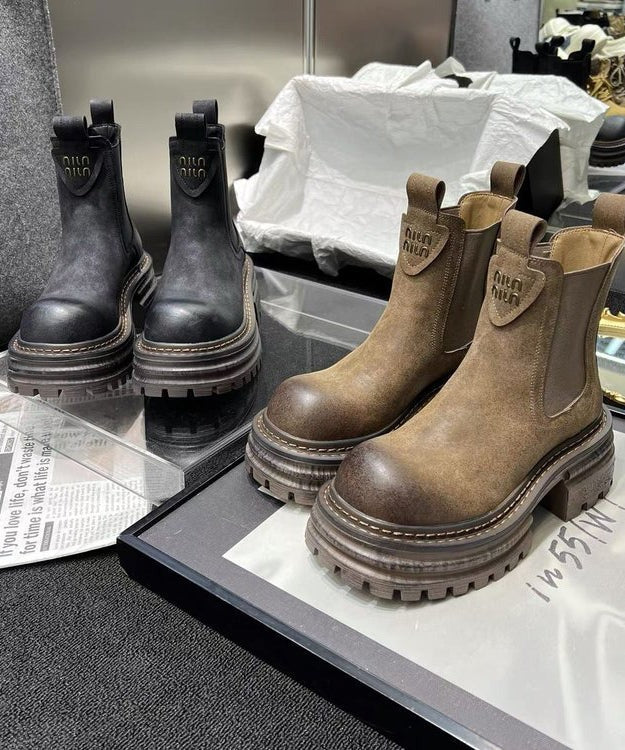 Khaki Stylish Splicing Platform Shelsea Boots