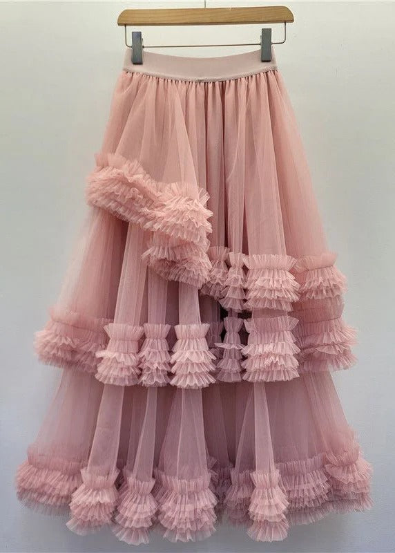 New Black Ruffled Elastic Waist Tulle Skirt Summer
