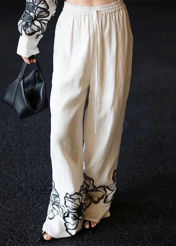 New White Peter Pan Collar Print Linen Two Piece Set Fall