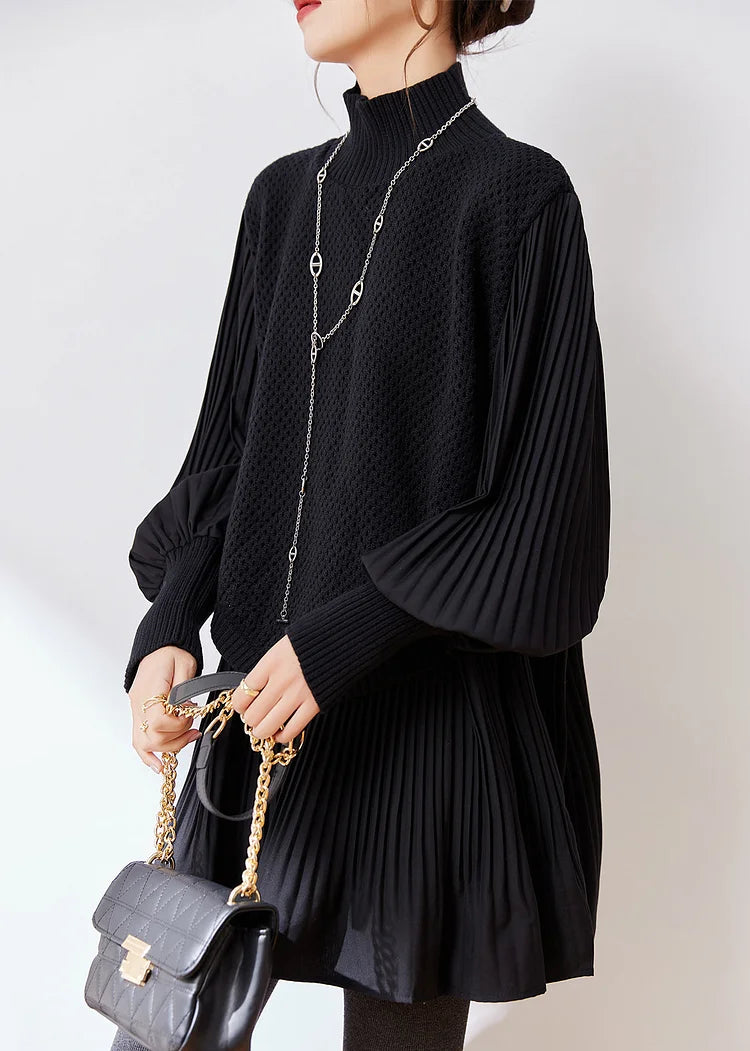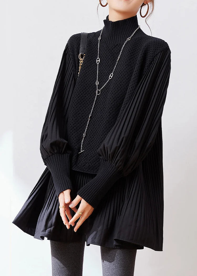 New Wine Red Half High Neck Knitted Spliced Fake Two Piece Sweater Winter