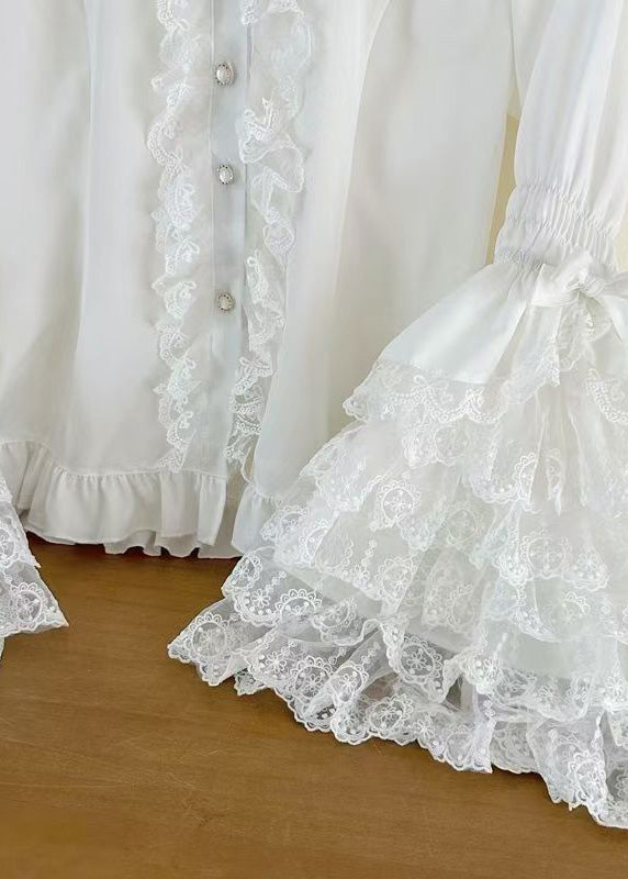 Original Design Sweet Pink Lace Patchwork Shirt Flare Sleeve