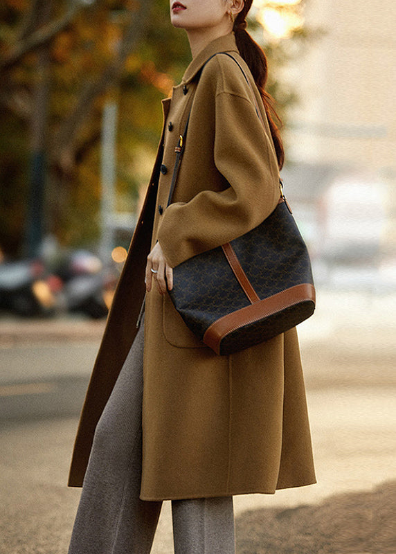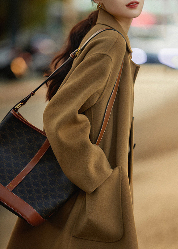 Plus Size Grey Peter Pan Collar Pockets Woolen Coats Winter