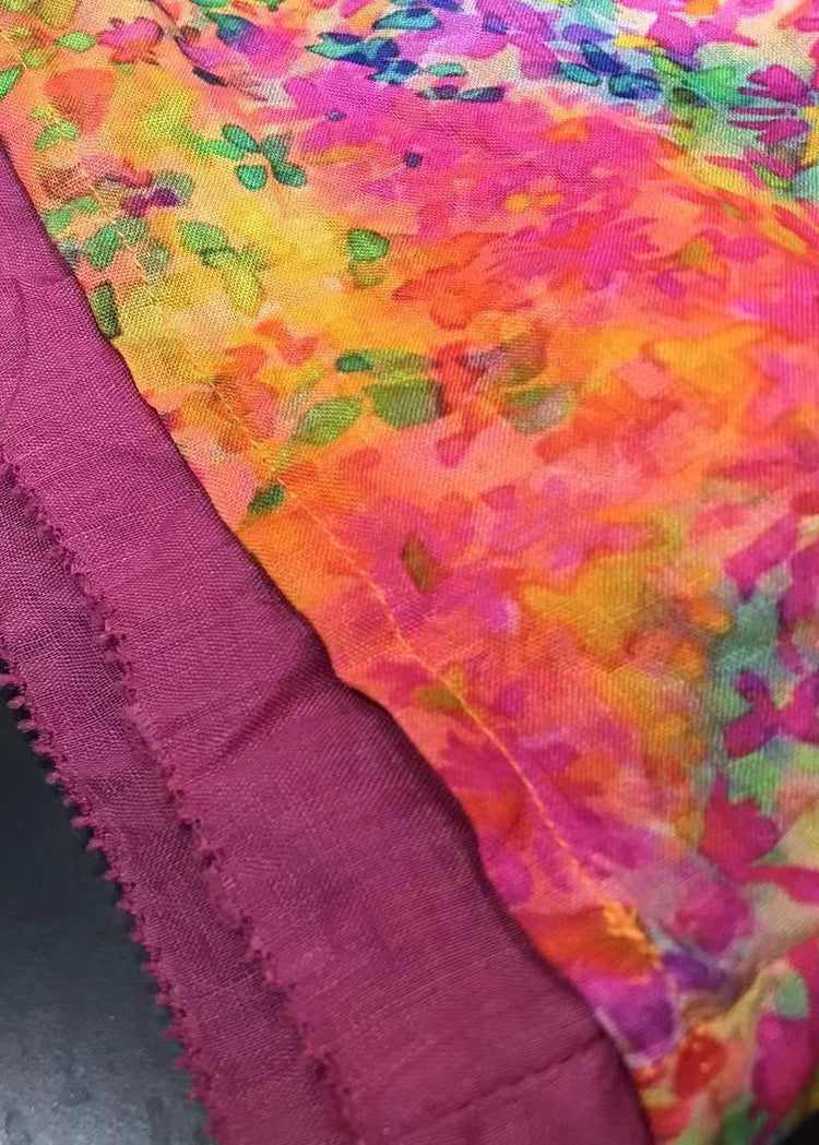 Plus Size Orange O Neck Print Patchwork Linen Blouse Tops Summer