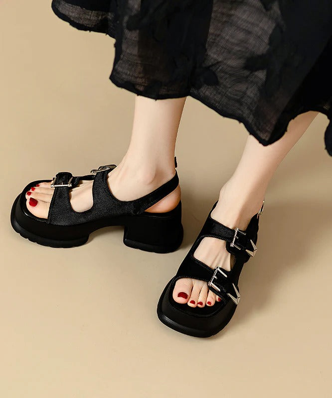 Red Platform Faux Leather Chic Buckle Strap Splicing Sandals