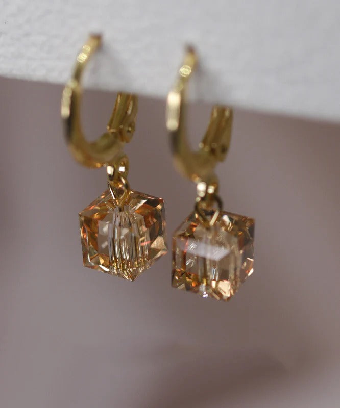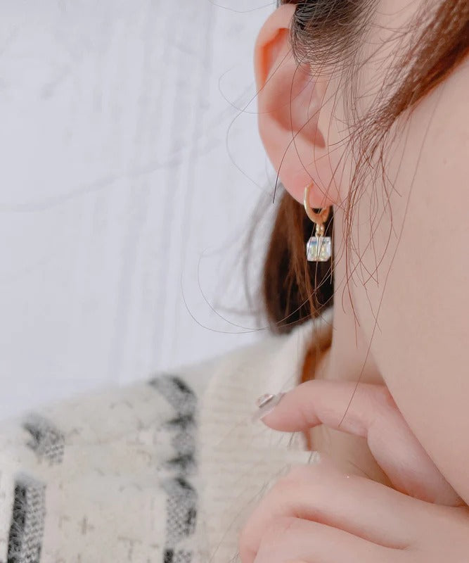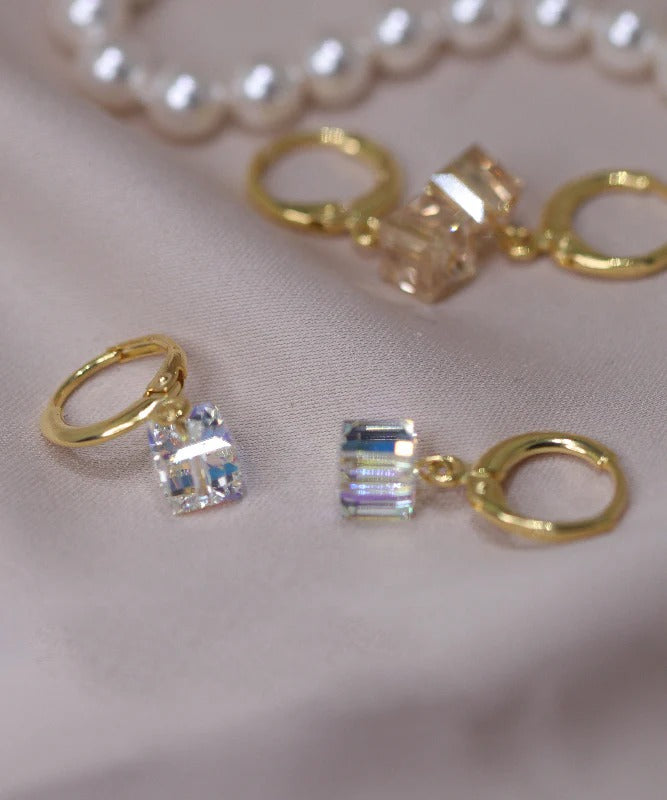 Stylish White Sterling Silver Overgild Crystal Drop Earrings